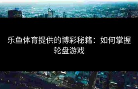 在现代体育博彩的世界里,越来越多的人涌入了乐鱼体育等平台,期望能够通过投注获得可观的回报。随着参与者...
